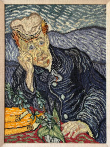 From an early age, Naomi “liked to work with my hands making things.” Her many craft projects included making made jewelry, crocheted toys, and ceramics, which led her to starting a small, handcrafted greeting card business while in San Francisco. A new creative avenue took her into creating artworks in needlepoint; these she would design herself by “painting with yarn” and by recreating well known French Impressionist paintings, Edward Curtis photos of Native Americans, and vintage sport posters onto needlepoint canvases. These sold well in Park City, but the “astronomical amount of time it takes to complete a project,” was no longer an option when she became a mother.